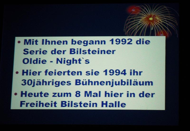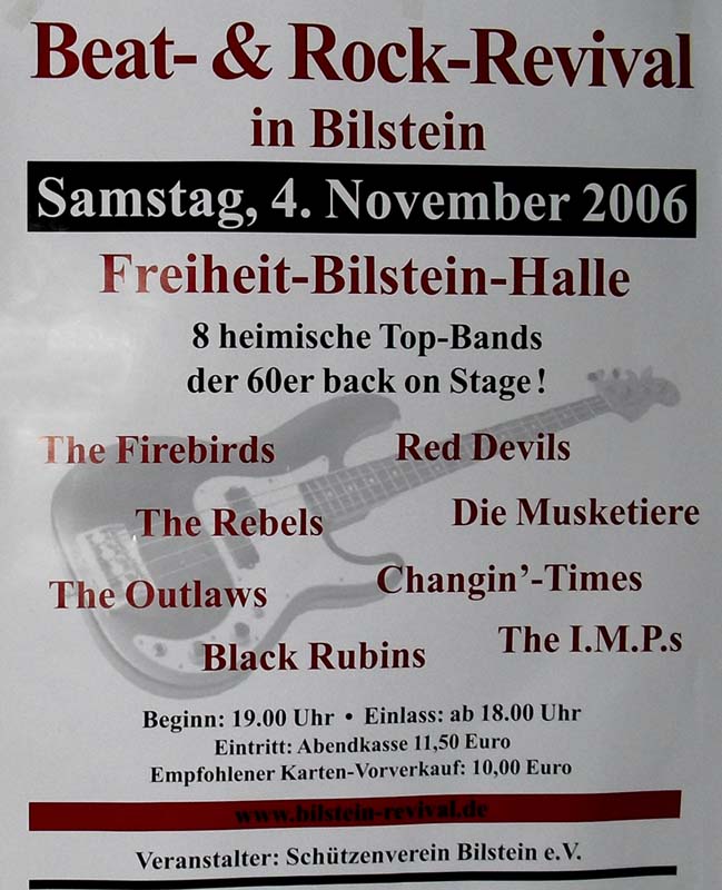 Im November 2006 fand in der Freiheit-Bilstein-Halle wieder eine große Oldie-Night statt. Alte und junge Beatfans erlebten einen einmaligen Abend, denn extra für dieses Ereignis hatten sich etliche Bands reformiert. Teilweise wurde sogar neues Equipment angeschafft, um an diesem Abend dabei zu sein. Wochenlanges Proben war bei fast allen Bands notwendig, damit die Songs aus der damaligen Zeit ordentlich präsentiert werden konnten. Außer den "FIREBIRDS", die ihr Programm im Schlaf spielen können, waren ja alle schwer aus der Übung. Daher muss allen Beteiligten Respekt gezollt werden.
