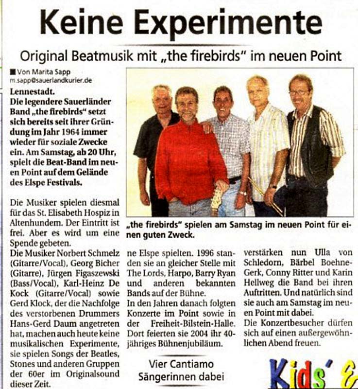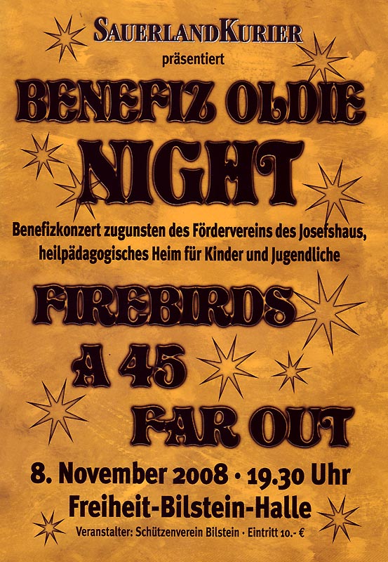 2008 gaben die 3 wohl besten Bands Lennestadt ein Benefizkonzert zu Gunsten des Josefshaus in Olpe. Es spielten the "FIREBIRDS", A 45 und Far Out