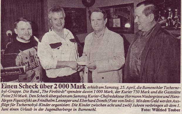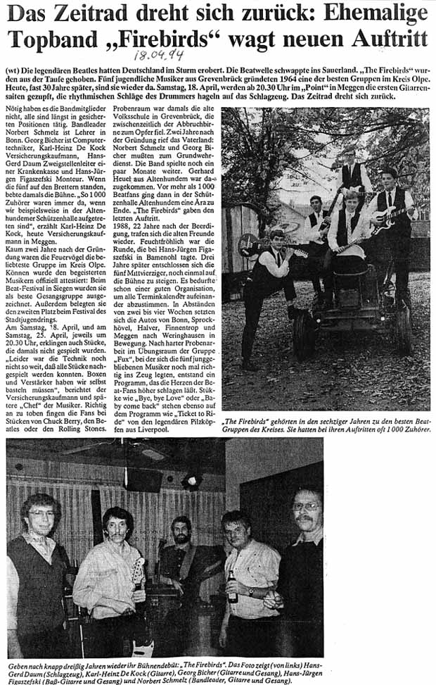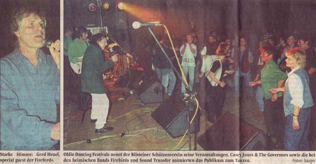 (für eine größere Ansicht die Zeitungsausschnitte anklicken)11.Mai 96 - die "FIREBIRDS" lernen bei einem Auftritt weitere Stars kennen. Der Sohn von Karl Heinz nahm Bild und Ton mit einer Video-Kamera auf und Klaus und ich schauten uns einen Teil des Auftritts der Band an. Da war Superstimmung !