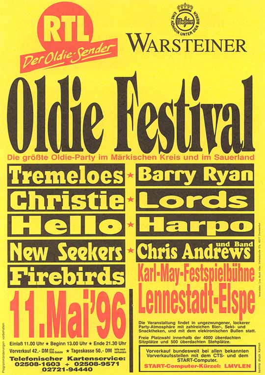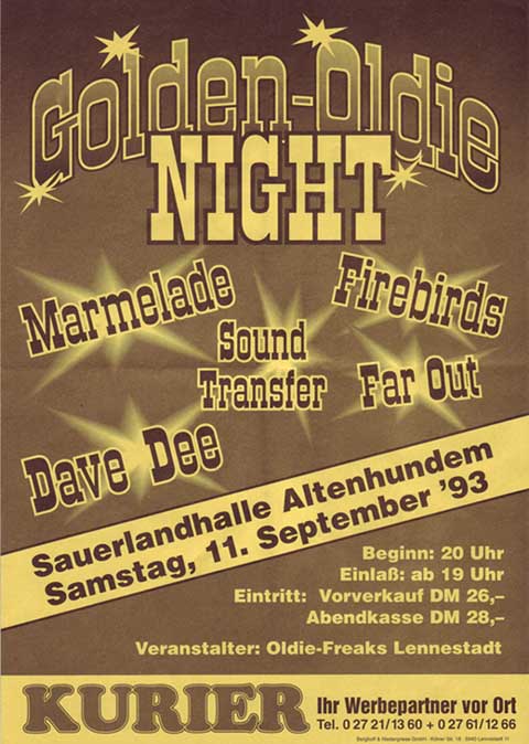 (für eine größere Ansicht den Sendeplan anklicken)Die OLDIE - FREAKS Lennestadt, Wolfgang Schütz steckt dahinter, veranstalten die GOLDEN - OLDIE NIGHT in der Sauerlandhalle Altenhundem. Dave Dee als Sänger der MARMELADE, wer hätte das gedacht ?