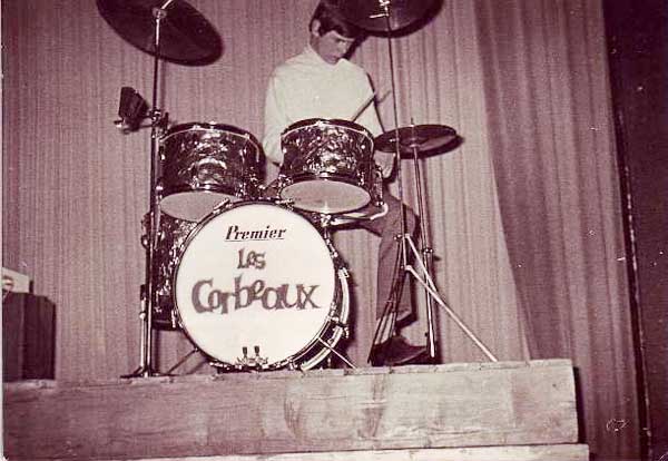 Kurios: in der Erstauflage der Broschüre „Beat & Rock im Kreis Olpe“ taucht der Gitarrenbauer Willy Hödl auf. Der ist verantwortlich dafür, dass ich Mitglied von "Les Corbeaux" wurde. Bei ihm habe ich mir nämlich eine (Semi-Akustic-) Gitarre gekauft, die auch einen Tonabnehmer hatte. Damit bin ich auf Einladung von Martin Hömberg und Hubertus Biermann zum Üben ins Jugendheim gegangen. Ich spielte noch keinen einzigen Akkord, und nicht nur deshalb ließ man mich es gar nicht erst versuchen: elektrische Gitarren waren knapp. Also setzte ich mich mal versuchsweise ans Schlagzeug und Karl-Heinz Bongen spielte meine Gitarre. Ich muss wohl, obwohl blutiger Anfänger an den Drums, auf Anhieb überzeugt haben: seitdem blieb ich dran. (Herbert Nölke)