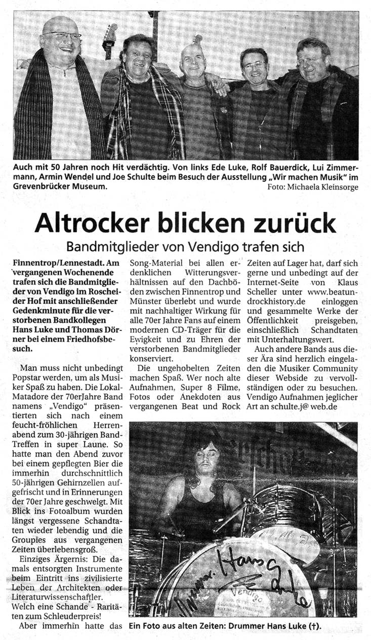 genauer gesagt am 30. Januar 2010 trafen sich die ehemaligen Vendigo Mitglieder Ede Luke, Rolf Bauerdick, Lui Zimmeramnn, Armin Wendel und Joe Schulte